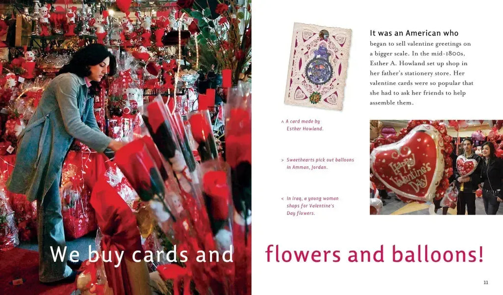 Readers discover a range of international Valentine’s Day traditions: making and exchanging cards decorated with hearts, lace, and ribbons; giving flowers, candy, balloons, and other gifts to friends and loved ones; attending special parties at school; and baking of cookies and other treats. We learn how the holiday’s popularity has grown around the world, particularly in Korea and Japan, where office workers give chocolates to their co-workers on Valentine’s Day.