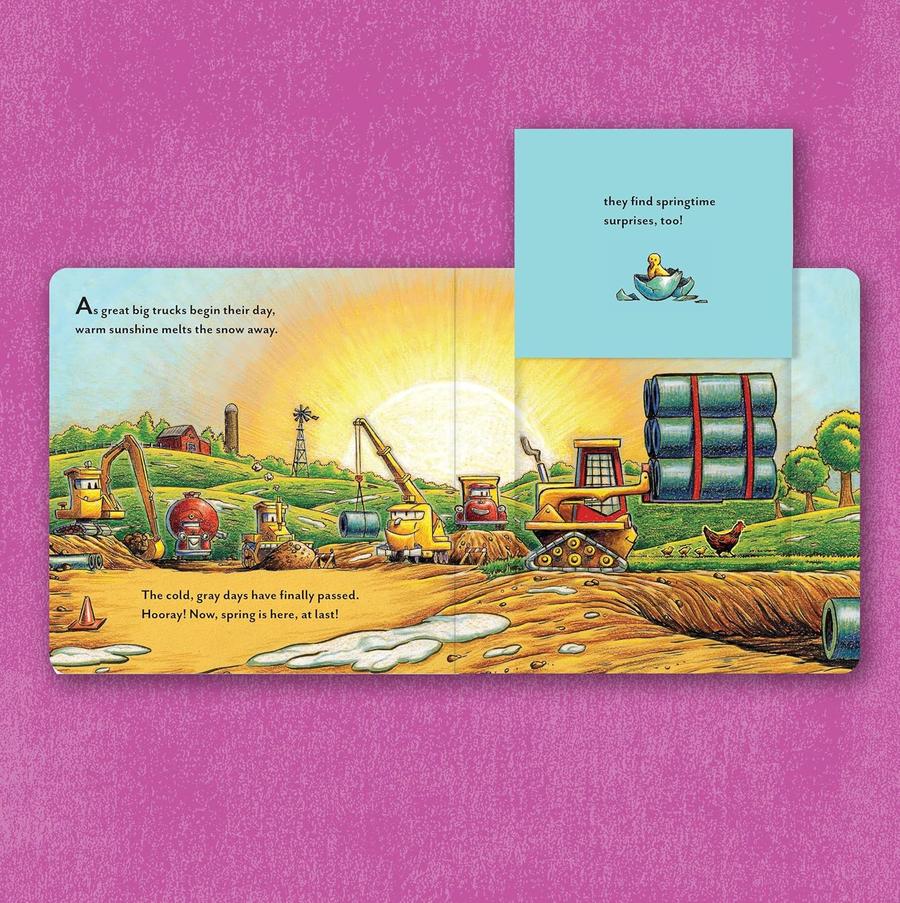 It's Easter at the construction site! As sunshine melts the snow away, the trucks discover all around them the signs of spring. Lift the flaps on each sturdy page to reveal blooming flowers, baby ducks, and gentle lambs—and a special Easter egg hunt surprise! With bestselling author Sherri Duskey Rinker's lovable rhyming text and heartwarming illustrations by AG Ford, this interactive Easter board book will bring smiles to truck lovers and their families while celebrating the beauty of spring.