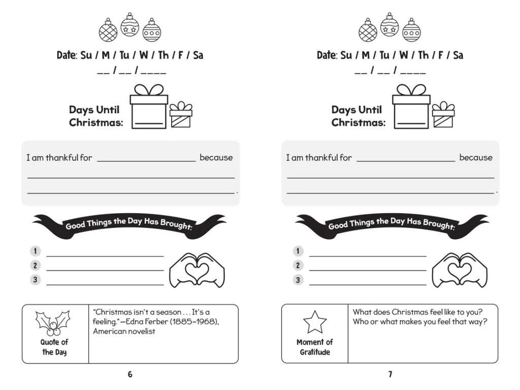 Filled with holiday cheer and festive activities, this activity book includes space for kids to record their wishlist items and journal about what they’re grateful for in the days leading up to Christmas.