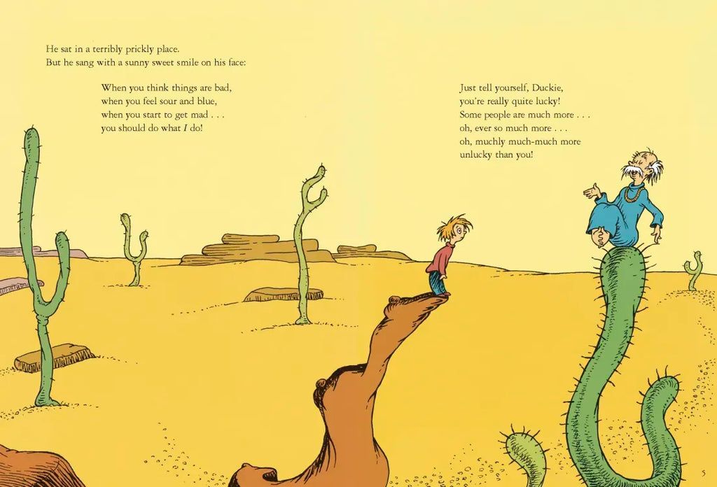 So begins the terrific advice of the wise old man in the Desert of Drize. This classic book provides the perfect antidote for readers of all ages who are feeling a bit down in the dumps. Thanks to Dr. Seuss's trademark rhymes and signature illustrations, readers will, without a doubt, realize just how lucky they truly are.