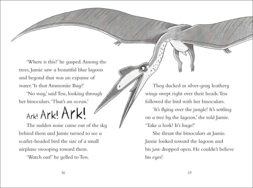 Meet Jamie, a member of the Dinosaur Club. They are a network of kids around the world who love to share dinosaur knowledge, help identify fossils, post dino discoveries, and chat about all things prehistoric. Jamie has just moved to Ammonite Bay, a stretch of coastline famous for its fossils. He is busy exploring when he discovers some dinosaur footprints and is transported back to the time of the dinosaurs! It sounds like Jamie needs some help from the Dinosaur Club…