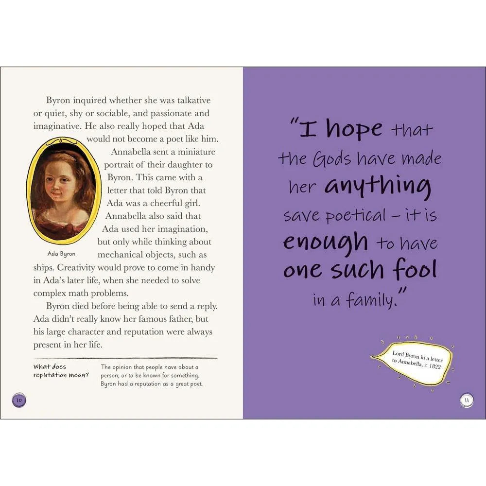 In 1833, Ada Lovelace met mathematician Charles Babbage, inventor of calculating machines. She went on to devise a way of inputting data into Babbage's Analytical Machine, and in doing so became the first-ever computer programmer. In this kids' biography book for 8-11 year olds, learn all about Ada Lovelace's fascinating life, including her famous father (celebrated poet Lord Byron), her talent for languages and mathematics, and her predictions for how computers could change our lives.