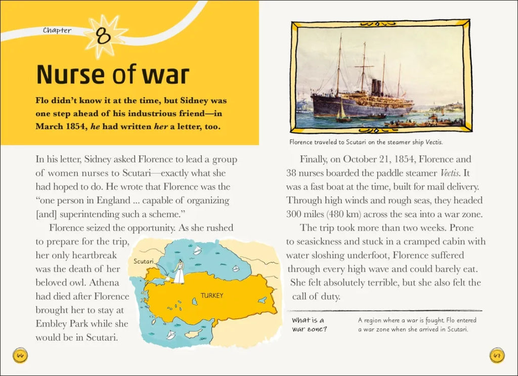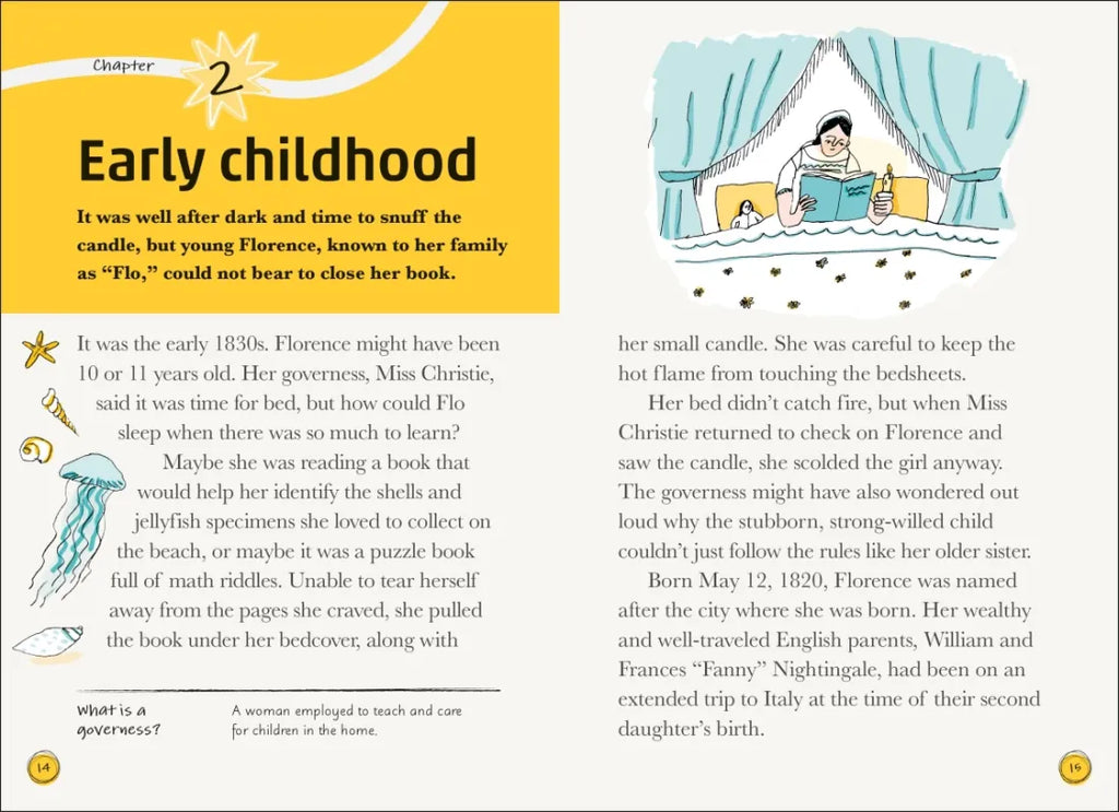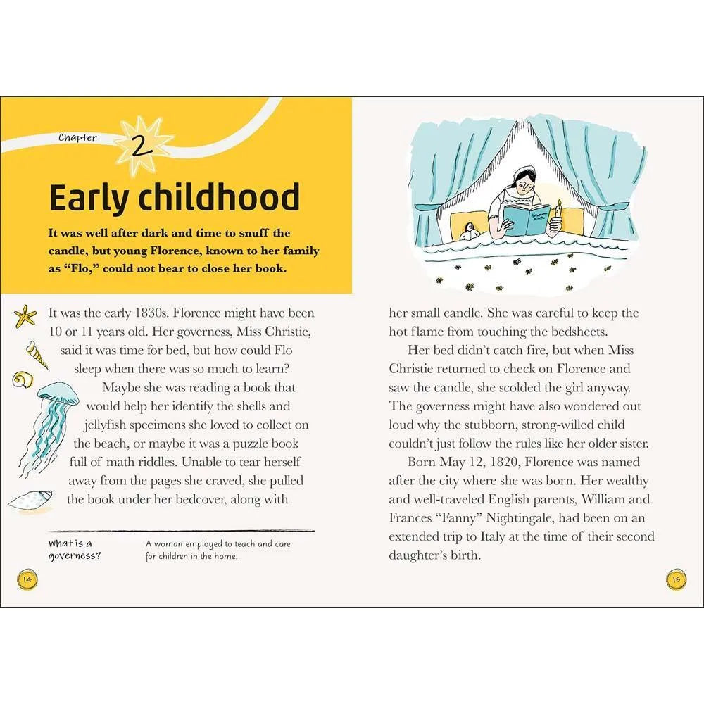 Florence Nightingale was a pioneer of nursing at a time when women were discouraged from working outside the home, especially in the field of science. She saved many lives both on and off the battlefield through implementing a new standard of medical care, and by leading groups of nurses to improve conditions. In this biography for kids ages 8-12, learn all about the inspiring story of Florence Nightingale--social reformer, statistician, and mother of modern nursing who bucked the social norms of her day and changed the world.