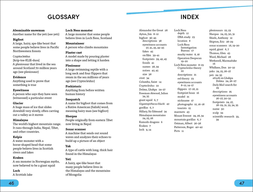 - Developing subject vocabulary on topics such as mysterious monsters, the evidence for their existence, and apparent sightings of these creatures.