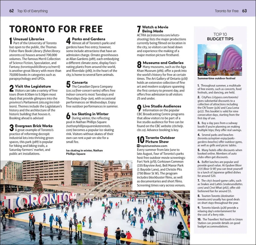 - Top 10 lists of Toronto’s must-sees and must-dos, including visiting the Hockey Hall of Fame, cycling around Toronto Islands and taking a boat trip to Niagara Falls