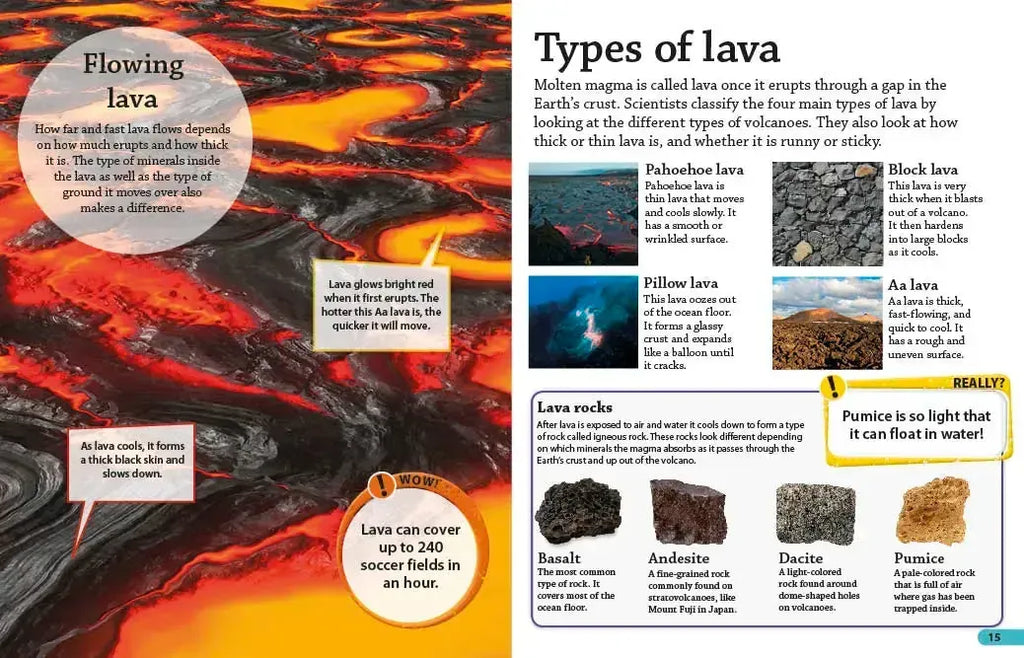 Supporting STEM-based learning, this fact-filled book for kids ages 6–9 is the ultimate guide to the potent power of volcanoes, from landslides to lava bombs. Entertaining and educating young readers through a combination of close-up images, quirky trivia facts, quiz questions, and fascinating tidbits, it’s the perfect book for any kid who can’t get enough of these fearsome landforms.
