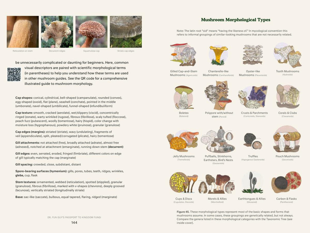 With colorful and comprehensive science illustrations, mushroom photography, and QR codes linking to resources to help you continue your fungal explorations, this is the perfect portal to step through into the world of mushrooms.
