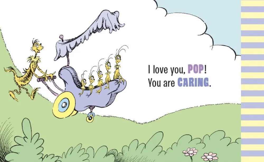 Dr. Seuss's I Love Pop is illustrated with full-color art by Dr. Seuss from the books Hop on Pop, Horton Hatches the Egg, One Fish Two Fish Red Fish Blue Fish, and many others.