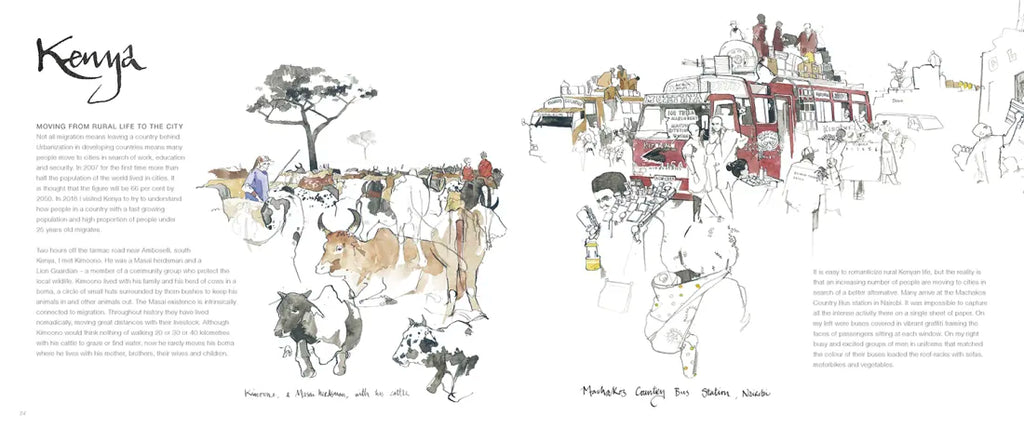 Resisting his own urge to walk away, award-winning artist George Butler took his sketchbook and made, over the course of a decade, a series of remarkable pen-and-ink and watercolor portraits in war zones, refugee camps, and on the move. While he worked, his subjects—migrants and refugees in the Middle East, Europe, Africa, and Asia—shared their stories. Theirs are the human stories behind the headlines that tell of fleeing poverty, disaster, and war, and of venturing into the unknown in search of jobs, education, and security. Whether sketching by the hospital bed of a ten-year-old Syrian boy who survived an airstrike, drawing the doll of a little Palestinian girl with big questions, or talking with a Masai herdsman forced to abandon his rural Kenyan home for the Kibera slums, George Butler turns reflective art and sensitive reportage into an eloquent cry for understanding and empathy. Taken together and elegantly packaged, his beautiful portraits form a moving testament to our shared humanity—and the universal urge for safety and a better life.