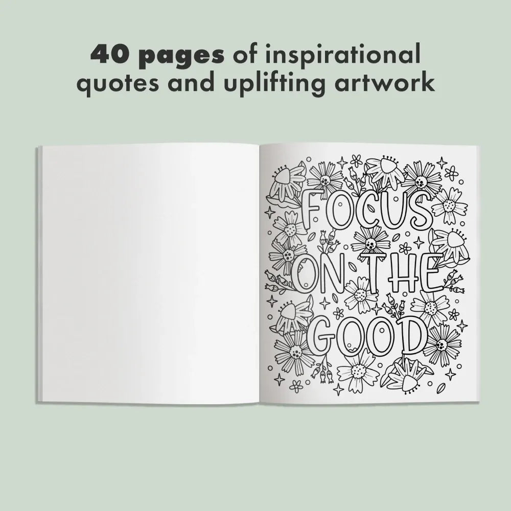 Relax into the beauty of the everyday with this adult coloring book featuring 40 pages of inspirational quotes and uplifting artwork