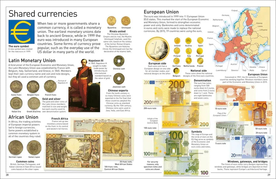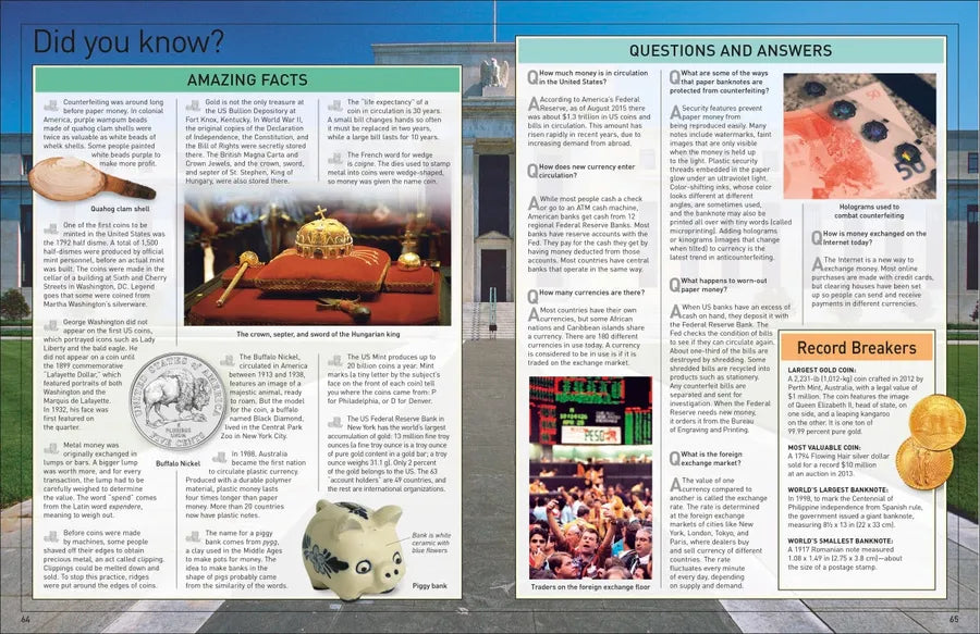 Starting with the earliest coins, chart the evolution of money and its role in war, trade, and culture. Featuring colorful visuals, this reference book uncovers both modern and ancient currencies from around the world, including those of France, Denmark, Italy, Spain, China, and Belgium. You will also discover what the world’s largest coin looks like and how you can build a coin collection of your own.