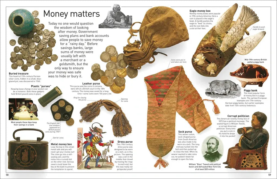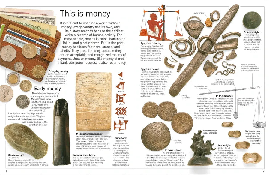 Before the notes and coins of today, feathers, stones, and even shells have all been used as money! Explaining everything from the ingots of the 19th century to the smartcards of today, Eyewitness Money is your guide to the amazing history of currency.