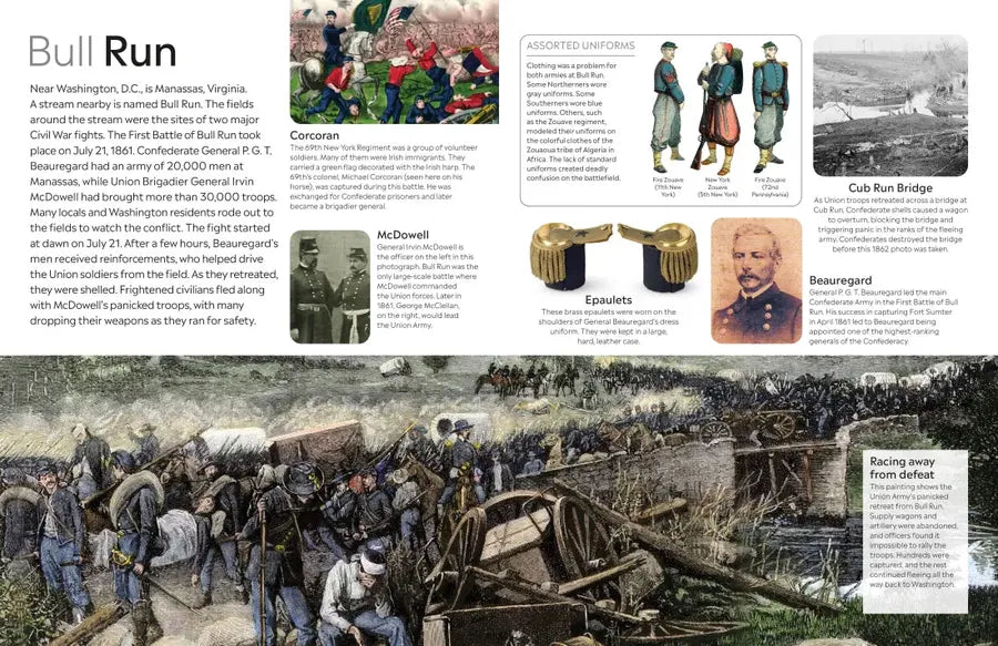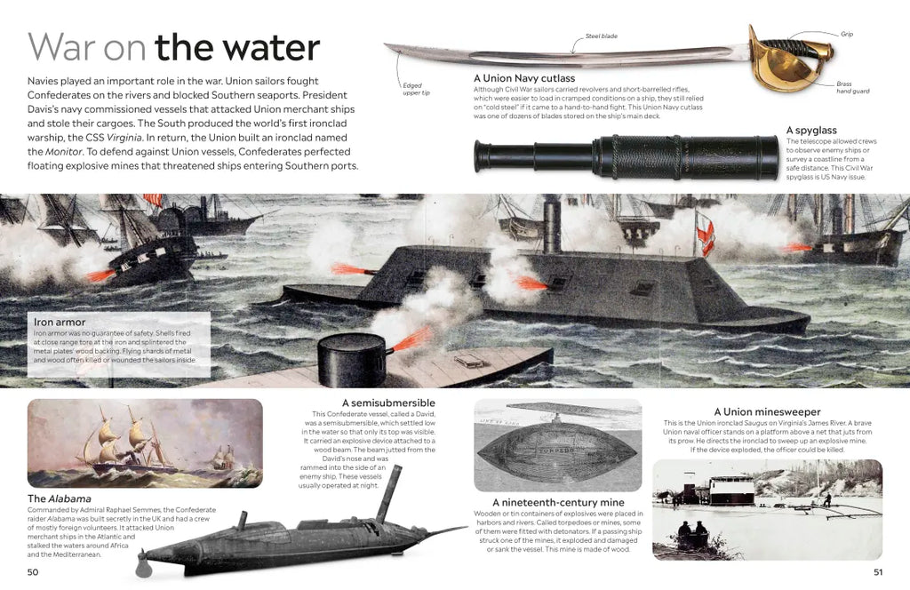 This unique, beautifully illustrated guide reveals the conflict between the North and South, of more than 50 battles, and shows both sides of the conflict in equal light. Using striking full-color photographs of paintings, artifacts and illustrations of battles, discover how tensions about slavery exploded into a war that lasted four years.