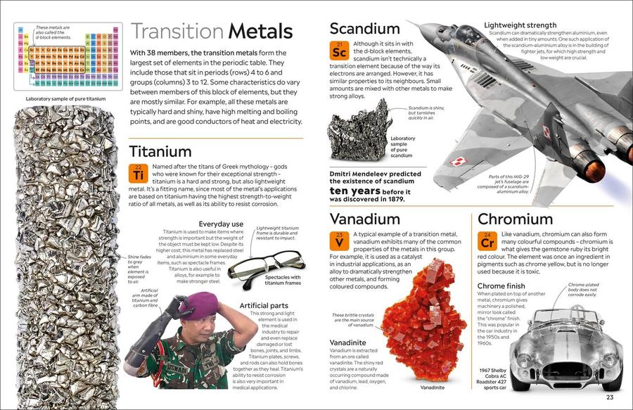 Become an eyewitness to the fascinating world of chemical elements, in this picture-led reference guide that will take you on a visual tour of their many different properties and uses. Children will be mesmerized by where each element comes from and what it is used for, like how precious gold protects astronauts in space.