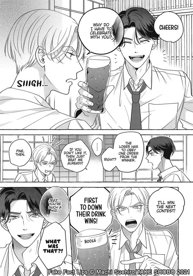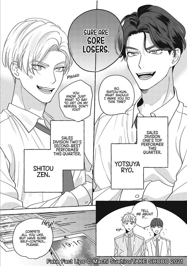 Ryou and Zen are two men who hate to lose–especially to each other. From high school rivals to rival co-workers, these two men have always been locked in fierce competition. They’ve competed over grades, sports, and even the number of Valentine’s chocolates received! And now that they’re salesmen at the same company, their rivalry has reignited.