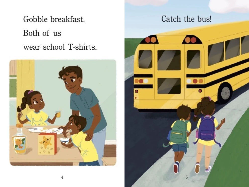 What's more fun than field day? The Day kids are so excited! They gobble their breakfast and race to the bus. So many fun things are waiting for them! Spoon-and-egg race! Face-painting! Kickball! A bouncy castle! Brother and sister can't wait!