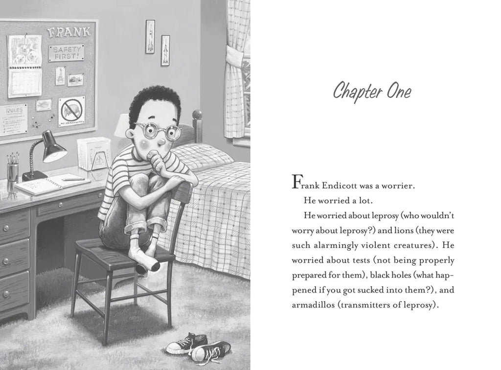 Welcome back to Deckawoo Drive for a sixth endearing installment in the companion series to Kate DiCamillo’s New York Times best-selling Mercy Watson books. Frank Endicott is a worrier. He worries about lions, submarines, black holes, leprosy, and armadillos. He lists his worries alphabetically in a notebook and suffers vivid nightmares that even a certain neighborhood pig can’t dispatch. When he accompanies Eugenia Lincoln on an errand to duplicate a key at her favorite dark and dusty thrift shop, Frank earns fresh cause for alarm. Odd Buddy Lamp, the shop’s proprietor, has sent them home with the original key and its copy. Can Frank come to terms with the mystery without buckling under his mounting dread? With a little help from friends (old and new), hot cocoa, and some classic short stories read aloud, the prognosis is good.