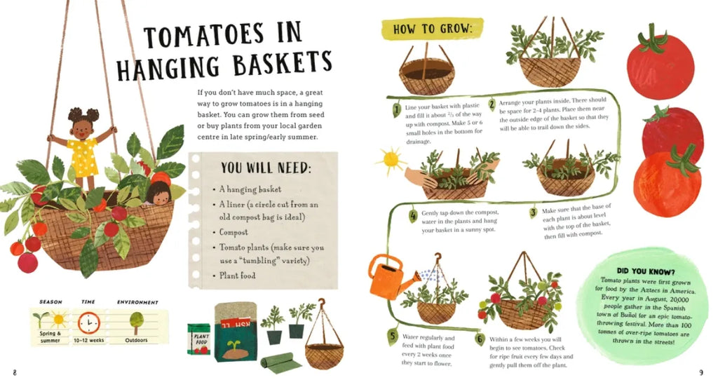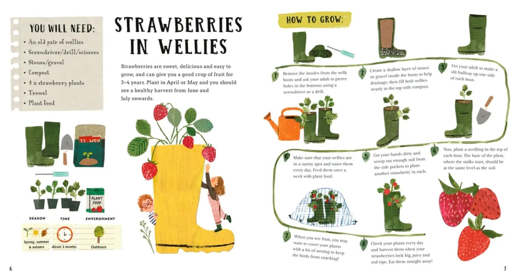 From strawberries in galoshes to herbs in recycled tin cans, this easy-to-follow gardening book contains fifteen simple (and delicious!) projects for budding young gardeners. Kids can learn all they need to know to grow their own fruit, herbs, and vegetables in whatever space they have at home, whether it be a windowsill or yard. Bright, engaging illustrations and clear instructions make this a great gift for any young child curious about where their food comes from and eager to grow some delectables themselves.