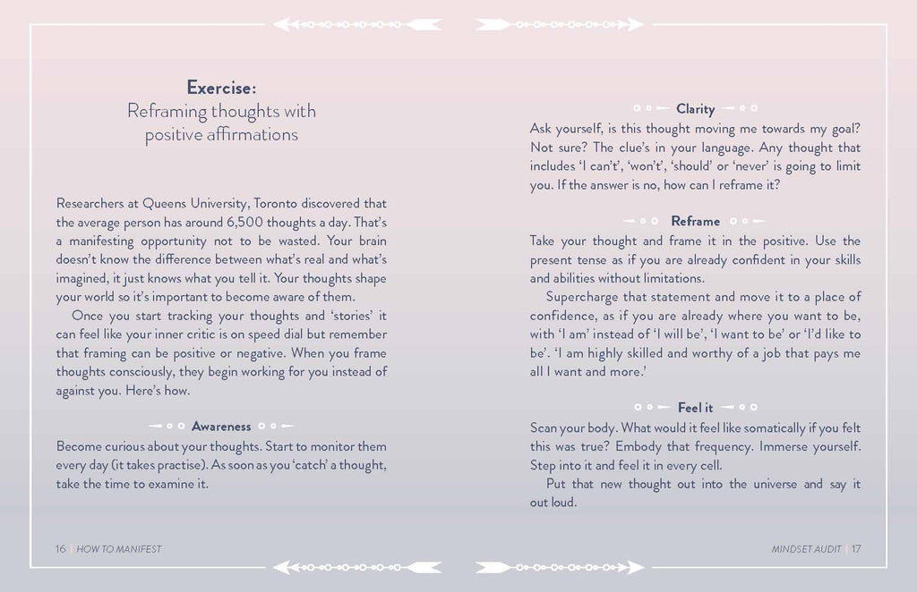 Your existence is a vital part of the universe. That can be difficult to remember when navigating overscheduled days full of uncertainty. Throughout the centuries, people have changed their lives by transforming how they think about themselves and their abilities. Through simple, thoughtful exercises that restore your purpose, How to Manifest shares modern practices rooted in ancient philosophies that can turn your life into the one you seek.