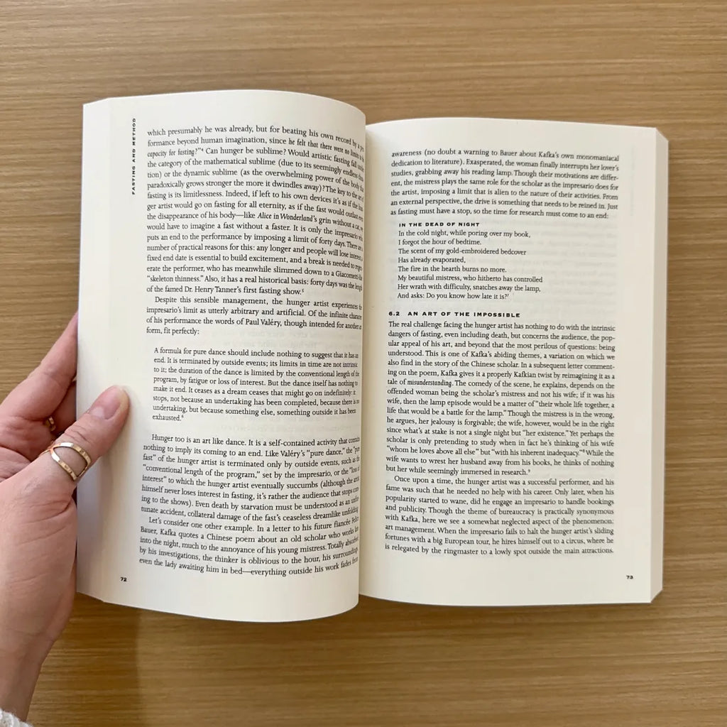 Neither an exercise in literary criticism nor a traditional philosophical commentary, this charming and idiosyncratic book aligns itself with the research program of Kafka’s dog. It constructs an “impossible” system based on the fourfold division of nourishment, music, incantation, and freedom—or, stated a bit differently: enjoyment, art, institutions, and freedom. From Plato to Flaubert, Lispector, and Lacan, Schuster puts the dog in dialogue with psychoanalytic theory, the history of philosophy, and modern literature. Imagining the “Unknown University” that Kafka’s new science calls for, the book enlists new comrades in the dog’s struggle.
