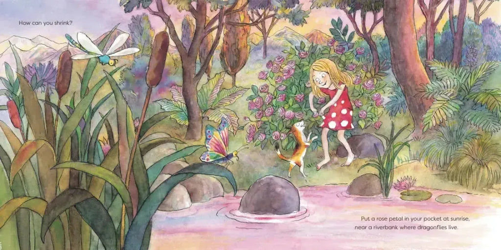 • Step 1: Put a rose petal in your pocket at sunrise, which will make you shrink. But don't forget: you must return by sunset-- or else you’ll stay shrunk!