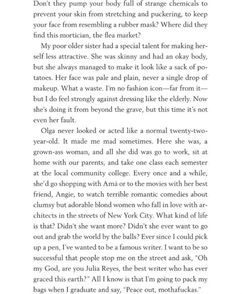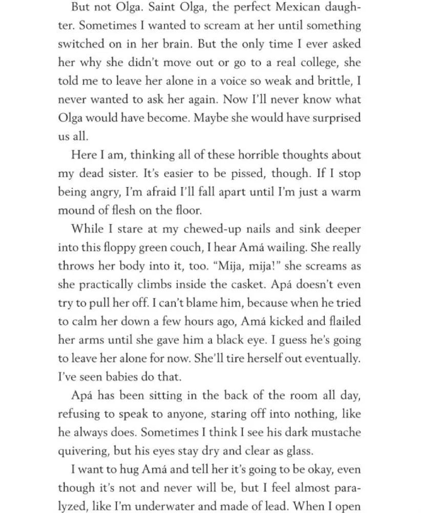 When her sister Olga dies in a tragic accident, Julia is left to pick up the pieces of her family. She is also expected to fill the shoes of her sister. But Julia has never been the perfect Mexican daughter.