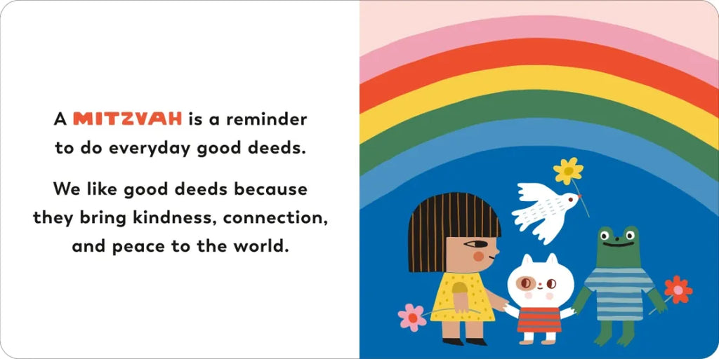 This modern and whimsical Jewish-themed board book series is the first of its kind to incorporate both Jewish traditions and Jewish culture, offering a truly representative and current depiction of Judaism. It's a Mitzvah! introduces readers to everyday good deeds, inspiring readers to bring kindness, connection, and peace to the world. Author and artist Suzy Ultman melds her own Jewish upbringing with her current trendsetting aesthetic to create a much-needed series of gorgeous, appealing, and perfectly simple books that will stand out on any table or shelf amidst the sea of blue and gold painterly Jewish-themed books that precede these.