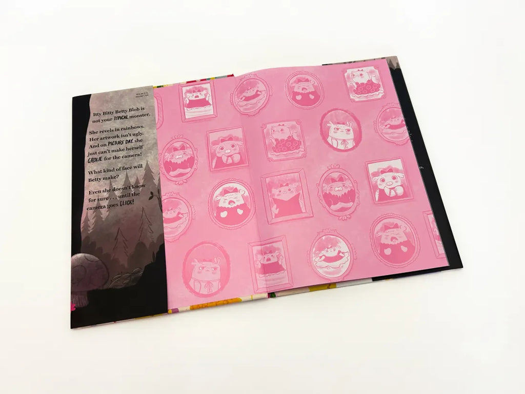 It's monster picture day again! Itty Bitty Betty Blob sits in front of the mirror practicing her growling for the camera. But for Betty growling is not so easy. She's not a typical monster, and she doesn't love scaring anyone. What does Betty love? Dancing and rainbows and cute furry creatures. So when Betty's mom hands her a perfectly horrible scaly black dress to wear on picture day, Betty isn't sure. Of course she wants to make mom happy, so she heads off to school with high hopes, practicing her growling all the way there... and that's when Betty makes a discovery that feels just right.