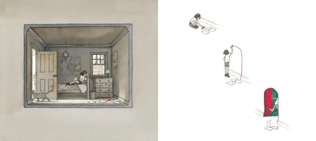 A lonely girl draws a magic door on her bedroom wall and through it escapes into a world where wonder, adventure, and danger abound. Red marker in hand, she creates a boat, a balloon, and a flying carpet that carry her on a spectacular journey toward an uncertain destiny. When she is captured by a sinister emperor, only an act of tremendous courage and kindness can set her free. Can it also lead her home and to her heart’s desire? With supple line, luminous color, and nimble flights of fancy, author-illustrator Aaron Becker launches an ordinary child on an extraordinary journey toward her greatest and most exciting adventure of all.