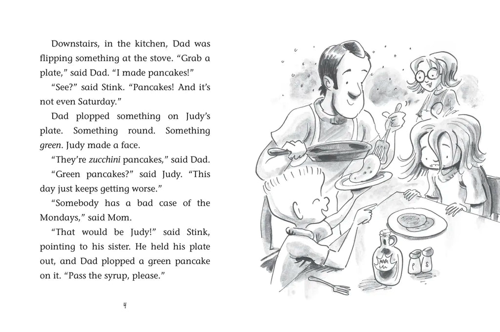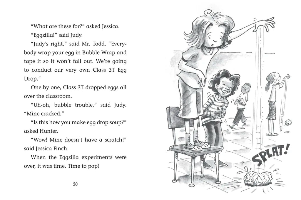 Judy Moody is Monday-morning mopey. Another week in her same-old seat at her same-old desk in her same-old school. Even worse, there aren’t any days off from school for ages. But when she steps into Class 3T, Judy’s Monday frown turns upside down. Pop! Pop! Pop-pop-pop! Mr Todd is making Monday special by celebrating Bubble Wrap Appreciation Day (no lie)! This gives Judy an idea that just-might-maybe turn her week around: why not make every day of the week a holiday? But after she and her friends come up with a week’s worth of wacky celebrations, from feeding ninja squirrels to honouring National Sneak Some Zucchini Onto Your Neighbor’s Porch Day, will the weekend be one big letdown?