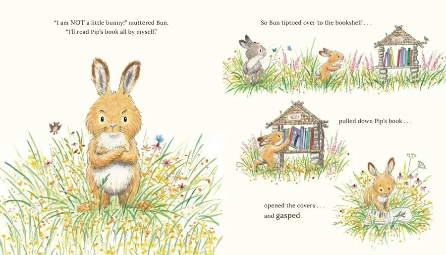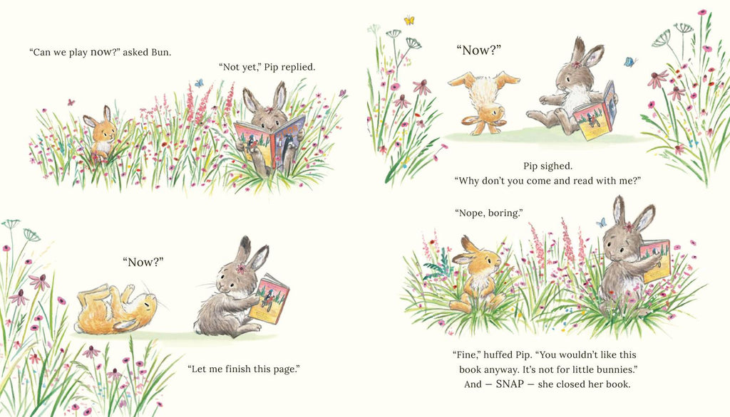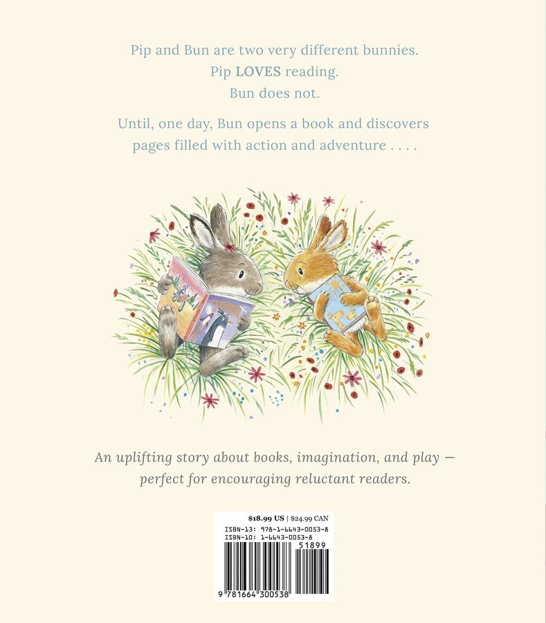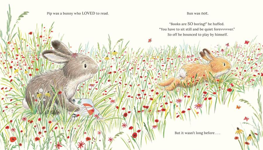 Pip and Bun are two very different bunnies. Pip LOVES reading. Bun does not. “Books are SO boring!” Bun says. One day, Pip is happily reading her book while Bun impatiently waits to play with her. Then Bun stumbles upon a book filled with action and adventure. Could it be the perfect way for the little rabbit to learn to enjoy reading?