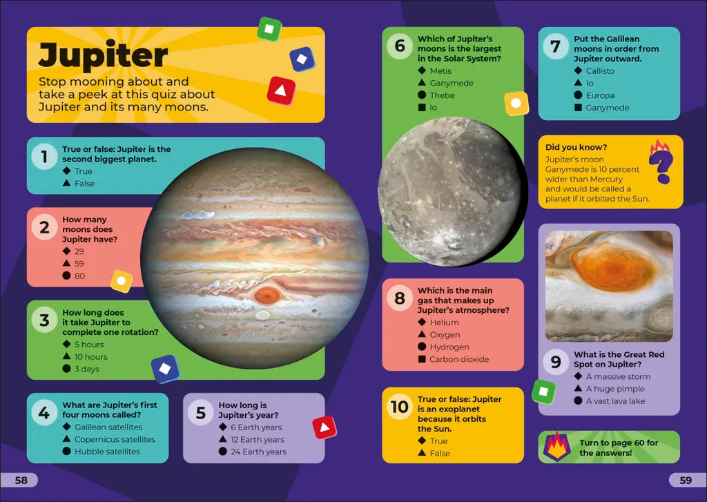 Bring the Quiz Time fun to family game nights and classroom learning with over 400 trivia questions about space!