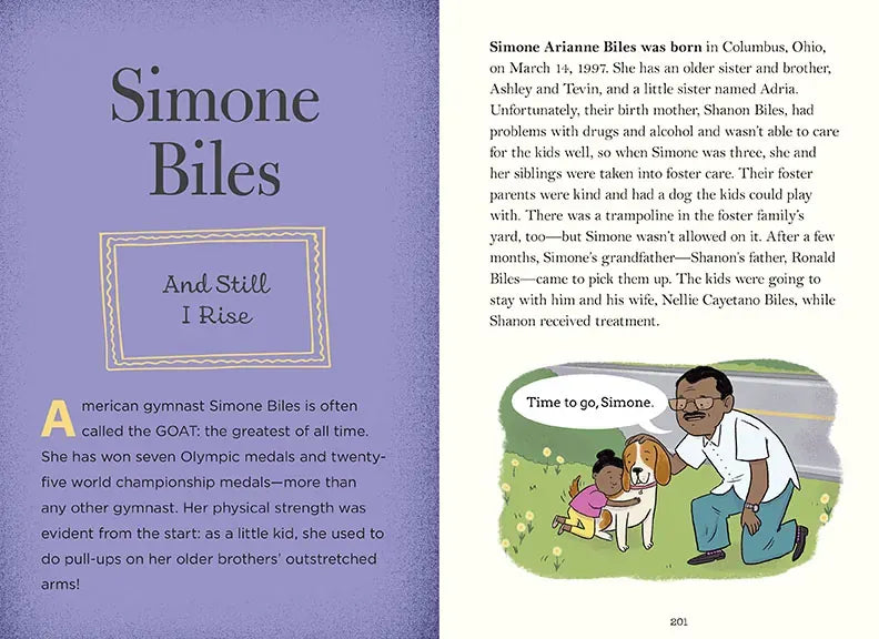 Triumphant, relatable, and totally true biographies tell the childhood stories of a diverse group of international athletes who have captured the world’s attention at the Summer Olympics and Paralympics, like Simone Biles, Jesse Owens, Naomi Osaka, Tatyana McFadden, and 12 other incredible olympians.