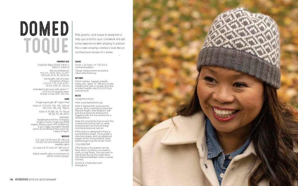 KnitOvation includes more than 150 brand new colorwork motifs to expand knitters' creative possibilities and draw them further into the world of stranded knitting with clever, quirky, and beautiful motifs including botanicals, animals, and geometric patterns. The motifs are accompanied by a selection of accessory and garment designs to illustrate how the motifs can be used, and technical information on new topics including using charts and adding flourishes with duplicate stitch.