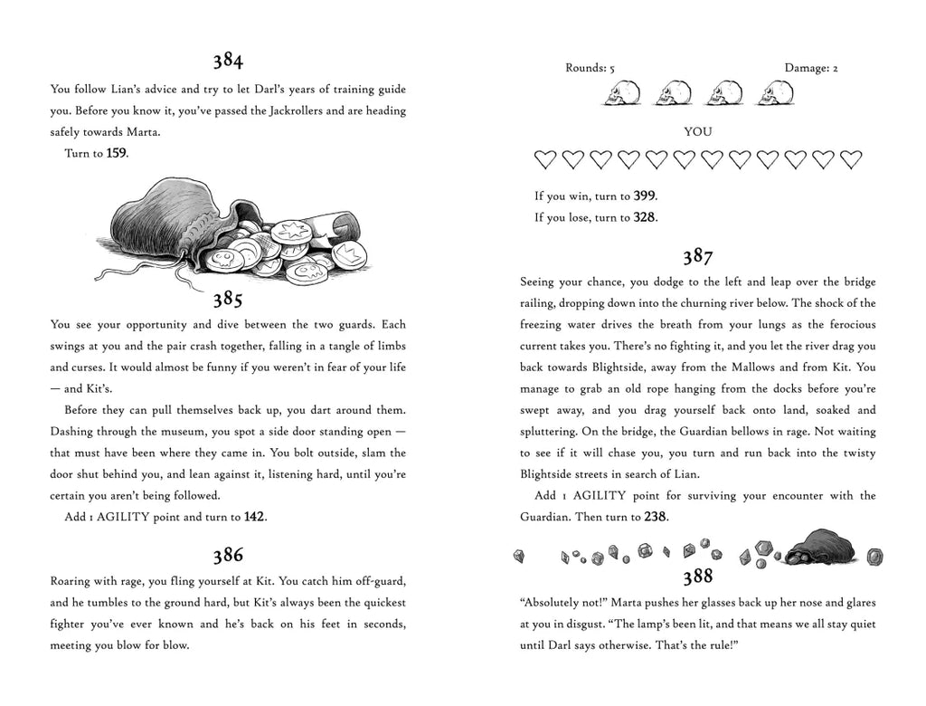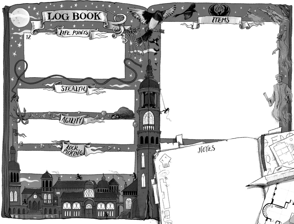 Prepare for death-defying rooftop chases, shadowy enemies and fiendish picture puzzles in this thrilling adventure gamebook where the hero of the story is YOU. As a member of the League of Thieves you're used to plenty of danger and mystery, but your most perilous mission yet is about to begin. Can you succeed where all others have failed and break into the infamous Castle Flaggstone to rescue your friend, steal a priceless treasure and uncover an ancient secret? With a fun dice-based combat system (complete with a link to an online dice-roller), beautifully illustrated puzzles to solve and a story full of twists and turns, this interactive adventure will have you gripped from beginning to end.