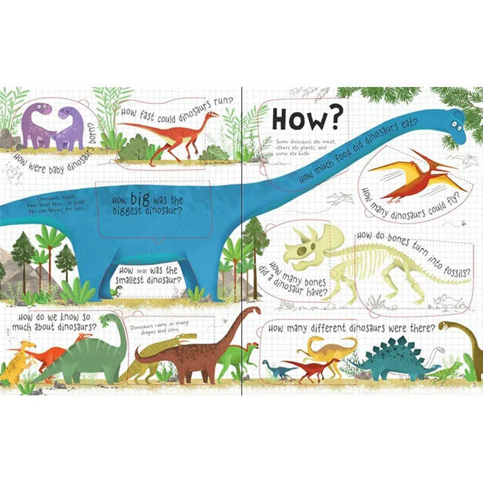 A colourful guide with over 60 flaps to lift to discover answers to questions young children might ask about dinosaurs.