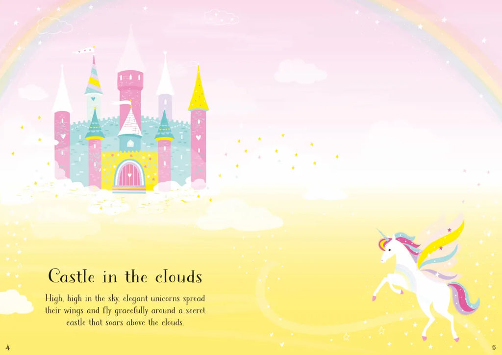 Unicorn lovers will adore this sparkly activity book with unicorns to decorate and fairies, pixies and princesses to dress on every page. Scenes include a castle in the clouds, painting rainbows, a walk in the forest and lots more. With over 300 reusable stickers, plus a fold-out back cover to 'park' stickers whilst they're not in use.