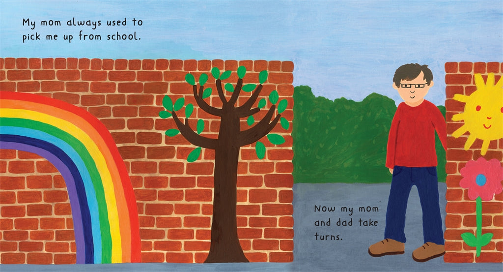 Her parents don't live together anymore, so sometimes the child in this book lives with her mom and cat, and sometimes with Dad. Her bedroom looks a little different in each house, and she keeps some toys in one place and some in another. But her favorite toys she takes with her wherever she goes. In an inviting lift-the-flap format saturated with colorful illustrations, Melanie Walsh visits the changes in routine that are familiar to many children whose parents live apart, but whose love and involvement remain as constant as ever.