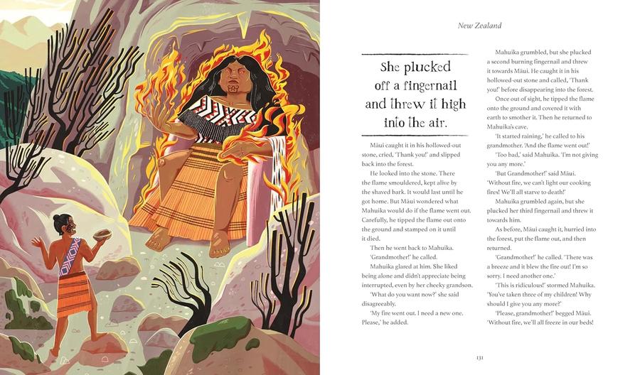 - Stories include: North America - Raven Brings Light to the World (Haida Gwaii, Canada); The Uktena''s Diamond (Cherokee Nation, USA); Sisimites (Mexico); Tata Duende (Belize). South America - Nine-Night (Guyana); Iara (Brazil); Pachakamaq and Pachamama (Peru). Africa - The Spider and the Turtle (Nigeria); The Love of a Hippo (Kenya); Why the Owl Flies at Night (Zimbabwe). Europe - The Bear Princess (England); Branwen (Wales); The Seven Wishes (Sweden). Oceania - The Rainbow Serpent (Australia); Māui Discovers Fire (New Zealand); Tigilau Versus Seia (Samoa). Asia - The Merchant and the Parrot (Ancient Persia); The King, the Queen and the Bee (Ancient Israel); The King, the Beetle and the Silk Thread (India); The Magic Dragon Boat (China)