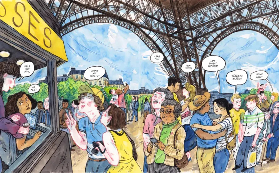 Two foreigners in France reach across language barriers and turn each other’s lives upside down in this stunningly beautiful queer romance graphic novel painted in dazzling watercolor.