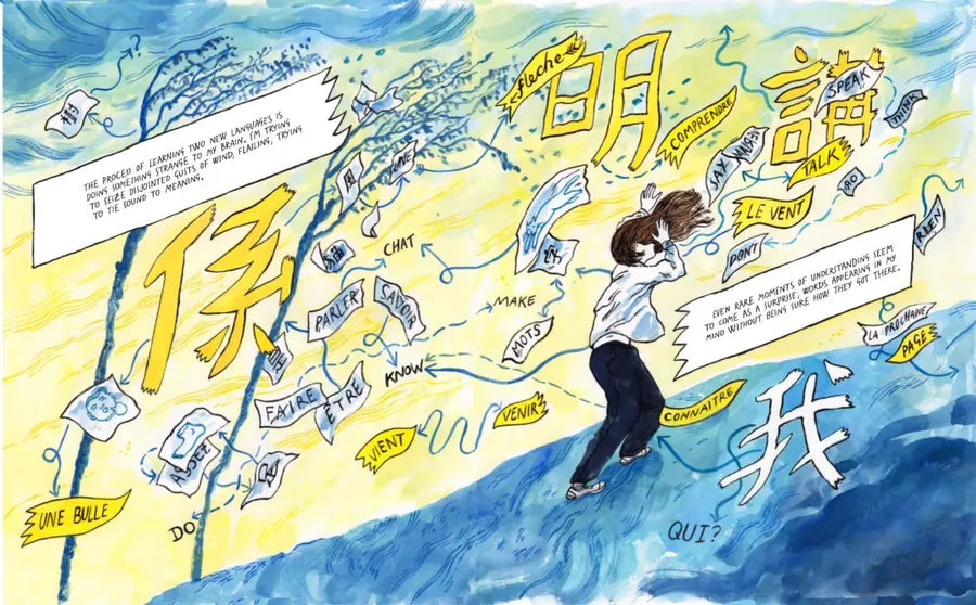 In museums and markets, over text messages and translation apps, Ping and Sarah slowly begin to learn each other’s languages, communicating in a rich and ever-shifting blend of English, French, and Cantonese. As their friendship blooms, so does their private dialect—a personal linguistic patchwork, a shared secret just for them. But when their feelings for each other start to deepen, they discover that the simplest words to translate can be the hardest words to say.