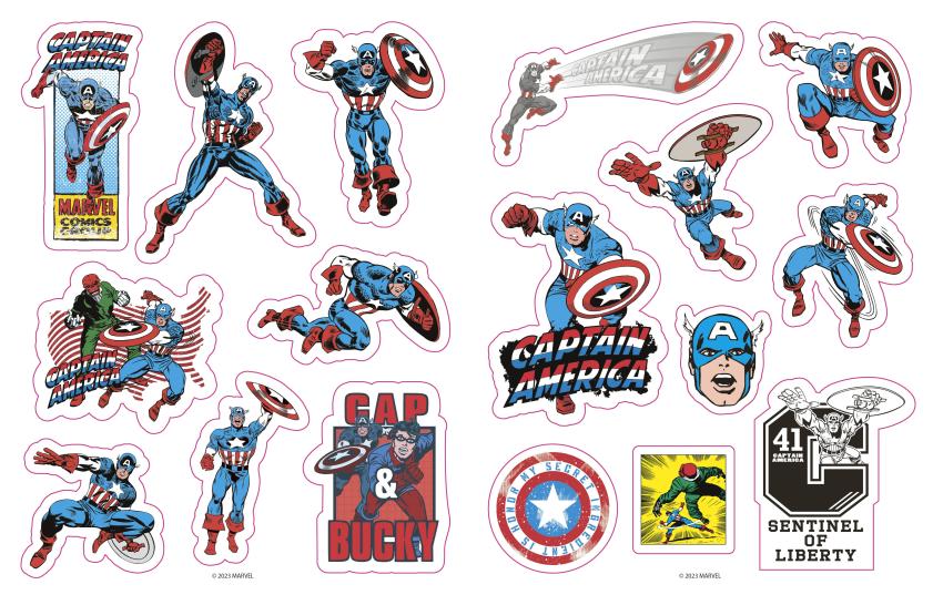 Revel in classic comics artwork with stickers of all your favorite characters, including iconic heroes such as Spider-Man, Iron Man, Black Widow and Captain America and villains such as Red Skull and Vulture.