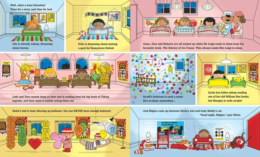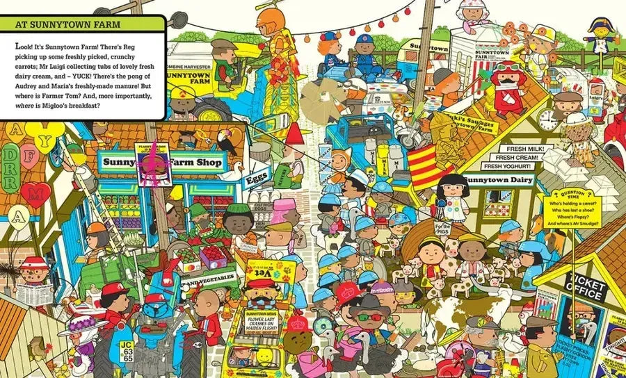 Migloo, the star of Migloo’s Day, is back — and it’s the weekend! Migloo and his Sunnytown friends are throwing off their uniforms and living large, going on trips to the museum, the outdoor cinema, the racetrack, and the glitzy fairground. There might even be a film star sighting in the offing, too! Packed with all the interactive features of its predecessor — humorous visual narratives, a dizzying gatefold, and a play page packed with many more things to find — this much-awaited follow-up to Migloo’s Day finds Sunnytown to be funnier, sillier, and busier than ever before.