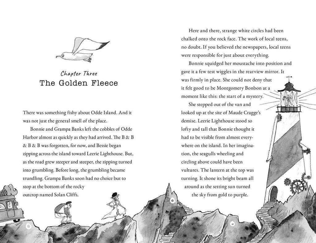 Bonnie Montgomery is finally getting a vacation from cracking cases as her alter ego, Montgomery Bonbon. But something terribly fishy happens the moment she and Grampa Banks arrive on Odde Island—and it’s not just the smell of the harbor. There’s been a mysterious death at the lighthouse, and what everyone assumed was an accident is setting Bonbon’s mustache all aquiver: something is Highly Suspicious. When a second death takes place, Bonnie is sure the two are connected. But can she solve this case alone, or will she need double the detectives to solve double the murders?