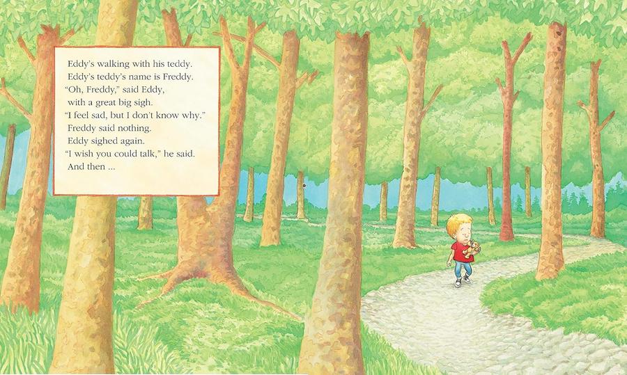 Eddie’s feeling sad, and so is the bear. They both wish they had a friend to talk to. All they have are their teddies, and teddies can’t talk. Or can they? Teddy fans, prepare! From the author-illustrator of the best-selling Where’s My Teddy?and It’s the Bear! comes a third warm and funny story about this odd-sized, lovable pair, a small boy and a rather large bear!
