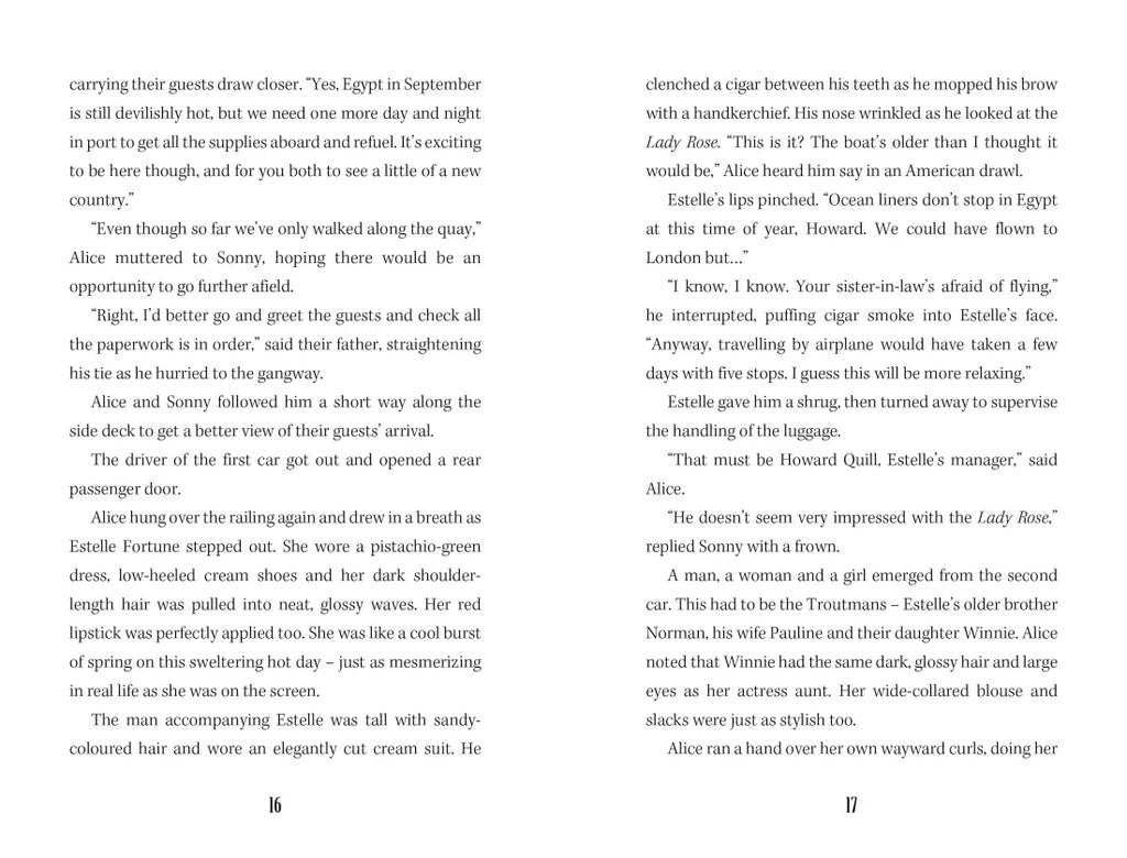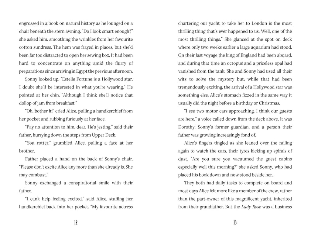 Alice and Sonny's family yacht is in Egypt, ready to pick up famous actress Estelle Fortune, and take her to London to film her next blockbuster movie.