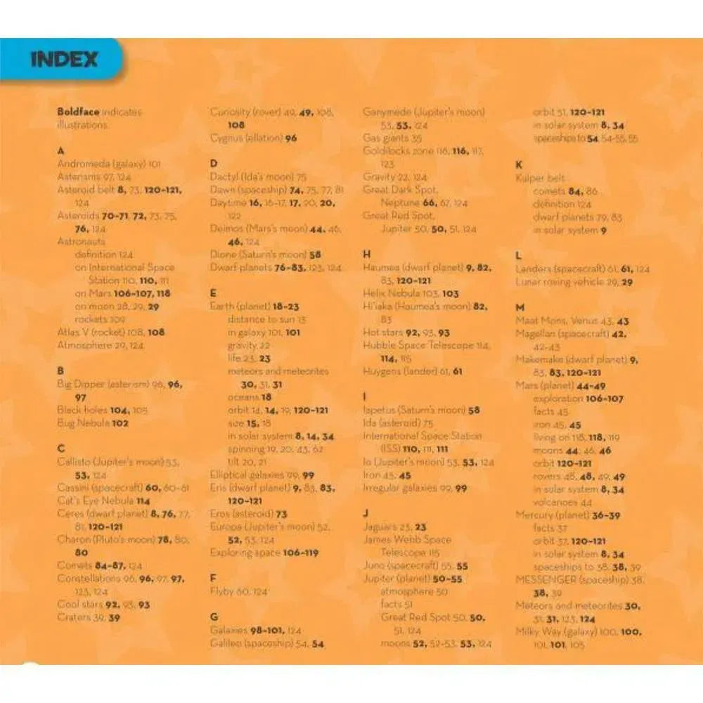 • The last chapter delves into space exploration: humans on the moon, spaceships, the International Space Station, etc.