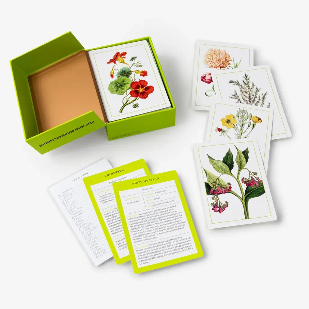 Whether you’re a curious home cook or a seasoned forager, New York Botanical Garden Herb Identification Flashcards makes it easy to identify your botanical findings and decide how they can best be used. The deck also includes a title card showing key features on each flashcard as well as a checklist of all the herbs in the deck. The laminated cards easily wipe clean after a romp through the meadows or a day in the kitchen, and the convenient size makes it easy to bring one or two to if you're shopping for herbs or toss the whole deck into a daypack for a hike. You can also use the cards to help plan your herb garden or just enjoy the exquisite artwork from the archives of the New York Botanical Garden.