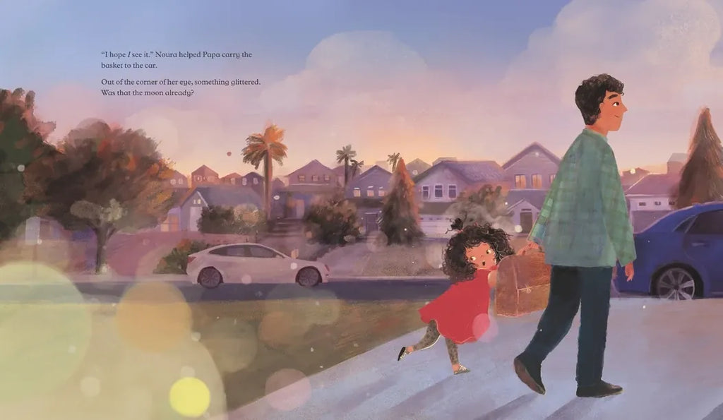 Venturing out after dusk with her family, a child is eager to watch for the new moon that signals the start of Eid ul-Fitr celebrations in this charming picture-book debut.