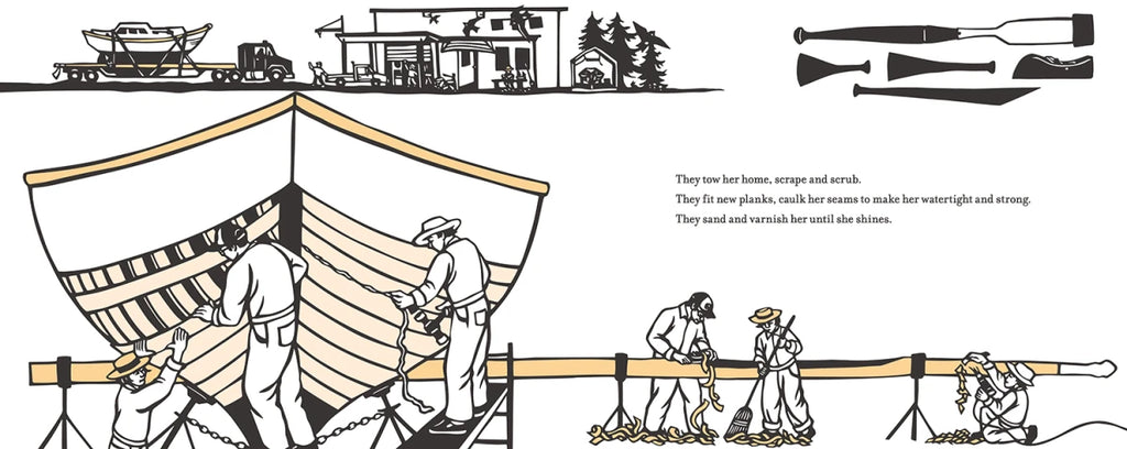 In this love letter to sailing, heralded artist Nikki McClure tells the story of a restored boat in timeless and reverent prose that perfectly accompanies her stunning cut-paper illustrations. At once delicate and bold, each page is masterful, rendered from a single sheet of black paper with precision and care that is sure to enthrall readers from coast to coast.